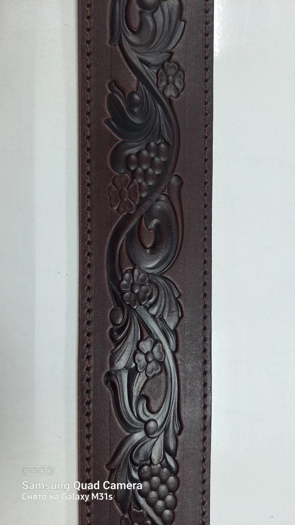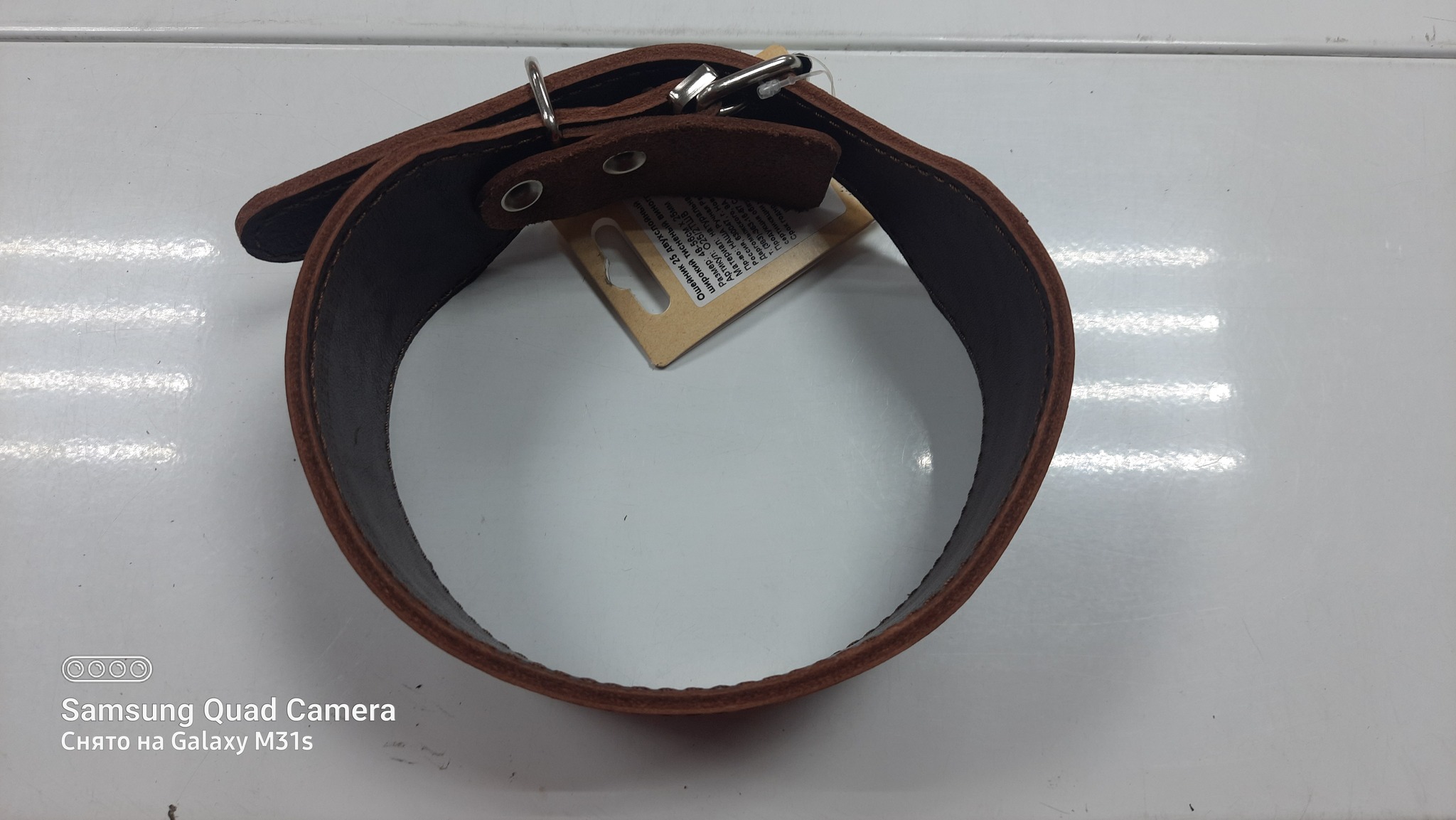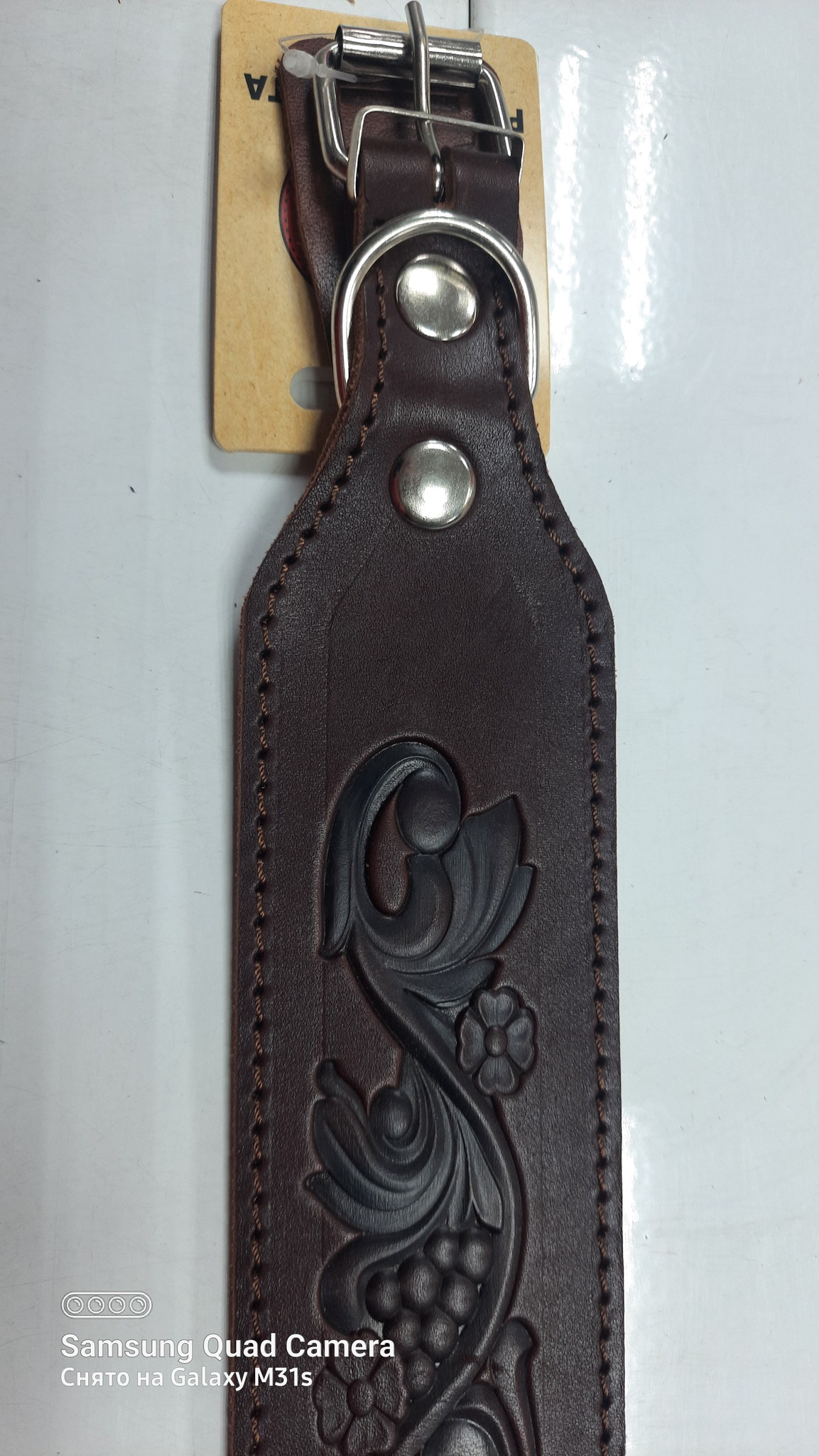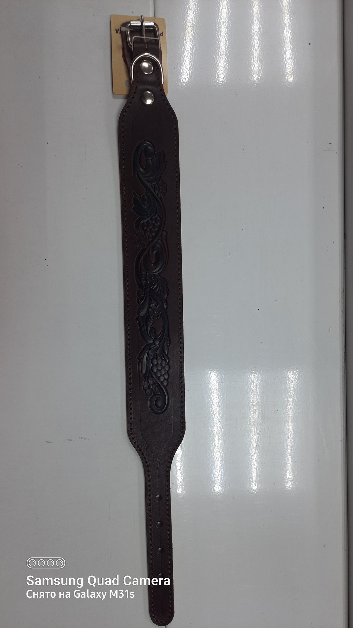 Ошейник натуральная кожа, 25мм×48-56см. двухслойный, широкий с тиснением виноград.